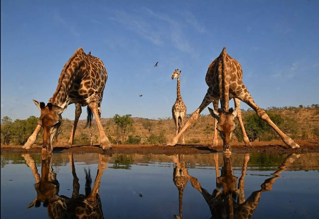 In this picture, the giraffe comes after a day full of vital activities and food to drink water in this way, defying the conditions of gravity💪🏻